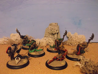 My first post of the New Year and I have been a busy Goblin! I have managed over the Xmas/New Year period to have re/painted 13 Snakemen. I am very happy with the output, and I am enjoying painting them much more.